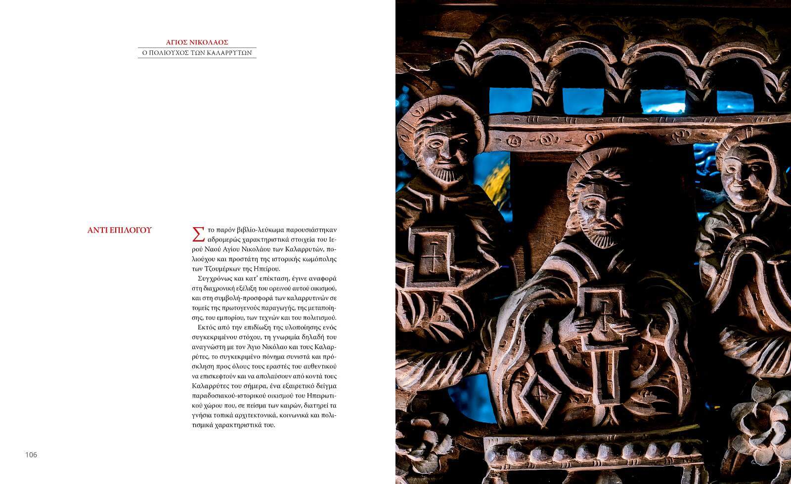 This album is dedicated to the Church of Saint Nicholas in Kalarrytes, Ioannina, set against the dramatic landscape of the Tzoumerka mountains. Through rich photographic material, it highlights the church’s architecture, frescoes, and the unique atmosphere of a monument that stands as a living testimony to the religious and cultural heritage of Epirus. The images invite the reader to explore the mountain settlement of Kalarrytes and to experience the church not only as a place of worship, but also as a landmark deeply connected to the history and identity of the region.